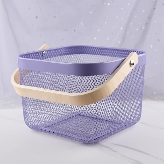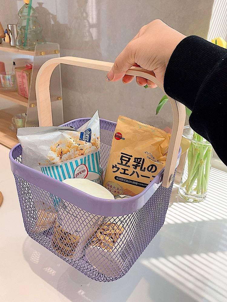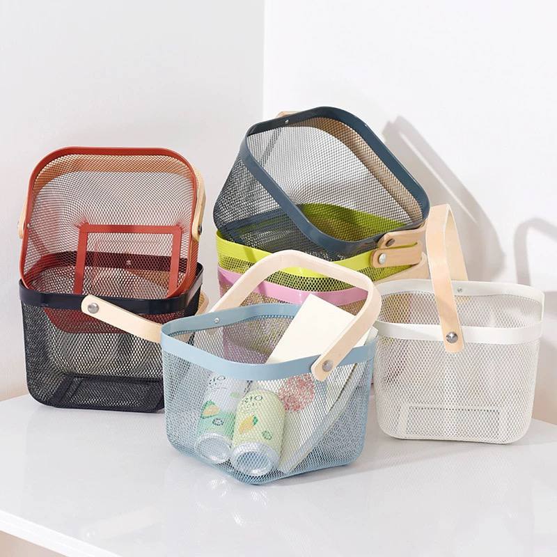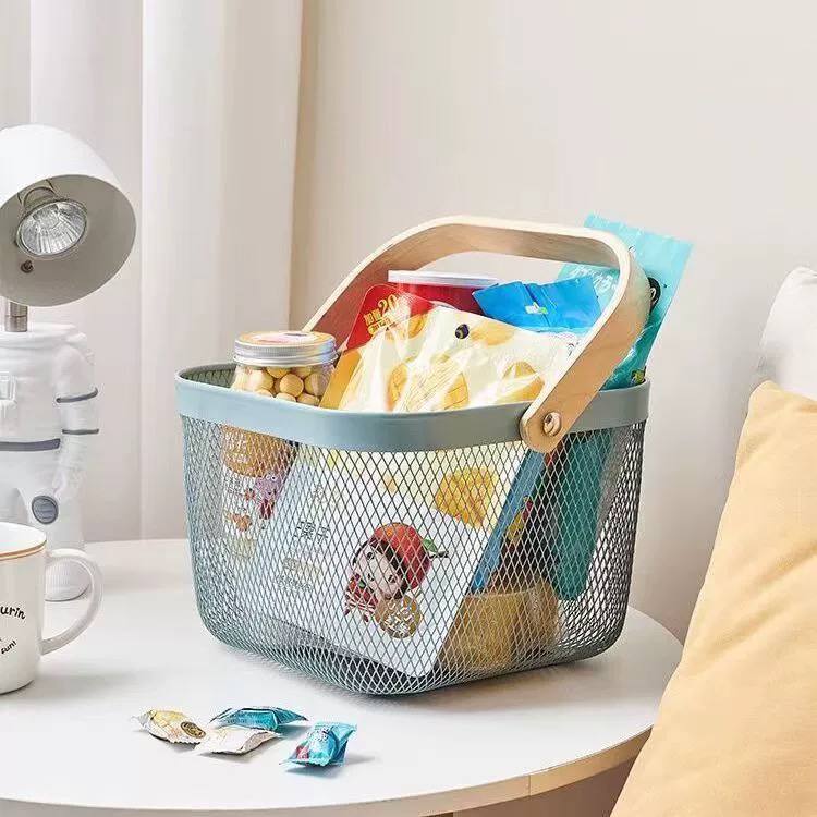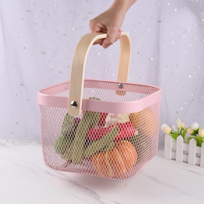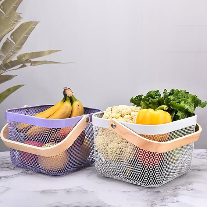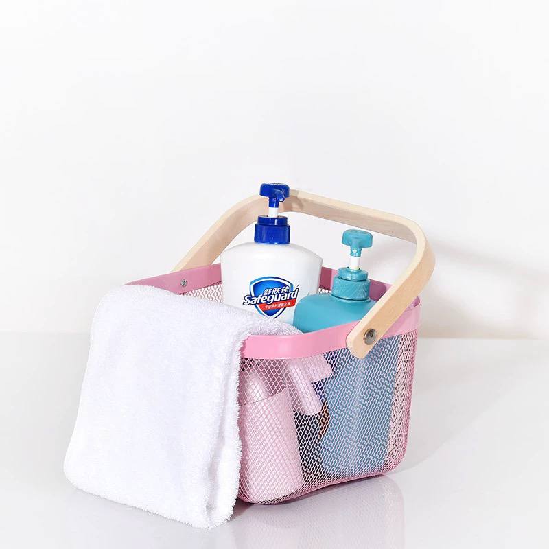 باسكت معدن لحمل الفواكه والخضروات وادوات الحمام بيد خشب لسهولة الحمل