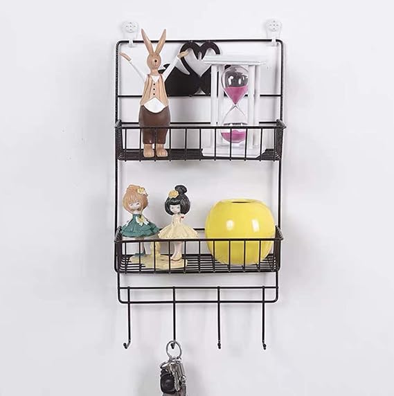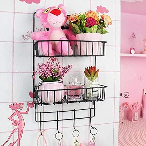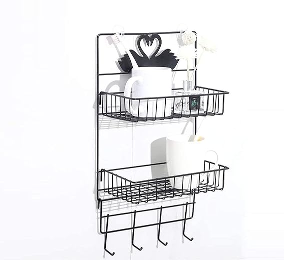 استاند معدن 2 دور لحمل وتنظيم ادوات المطبخ والحمام ب 4 هوك بلزق دبل فيس قوي