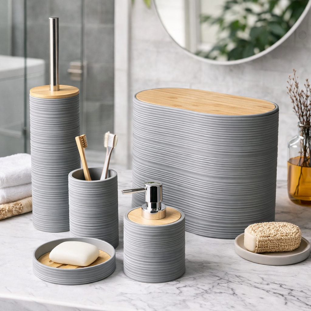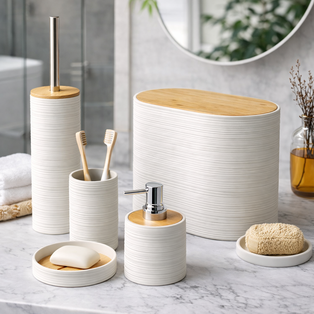 طقم حمام مودرن 6 قطع متكامل لتنظيم وترتيب الحمام
