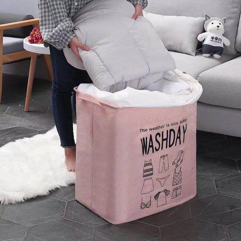 سلة الغسيل وحافظة البطاطين الجامبو من الكتان
