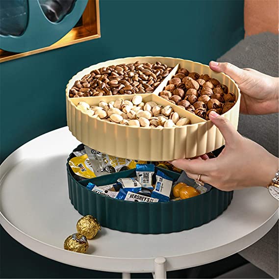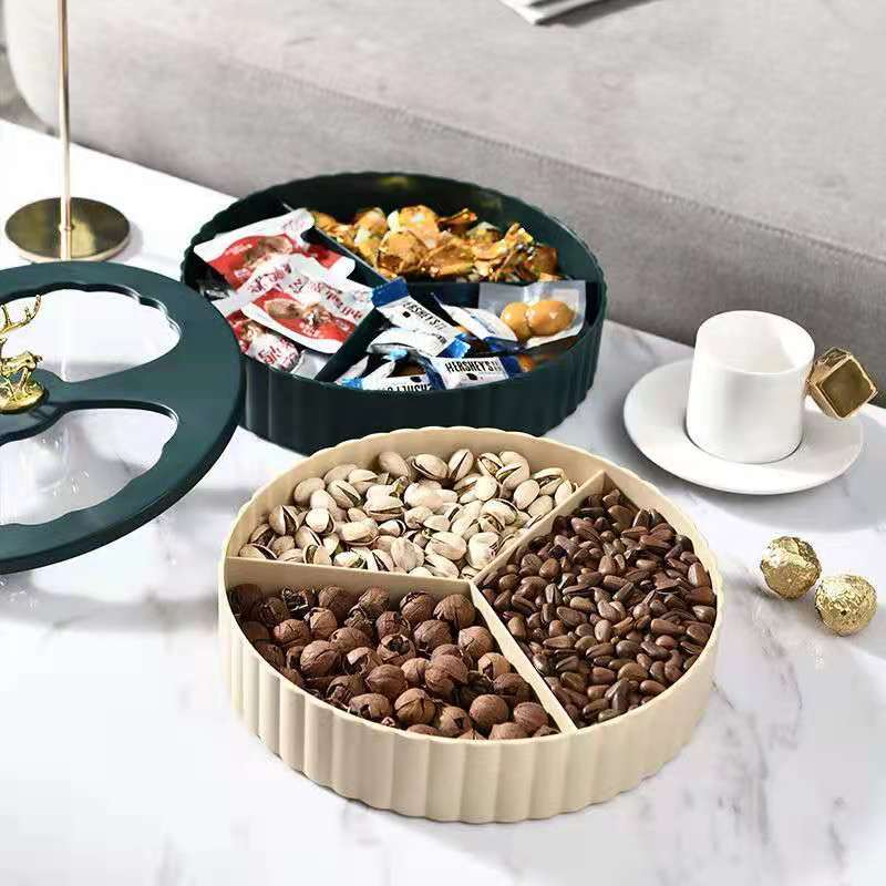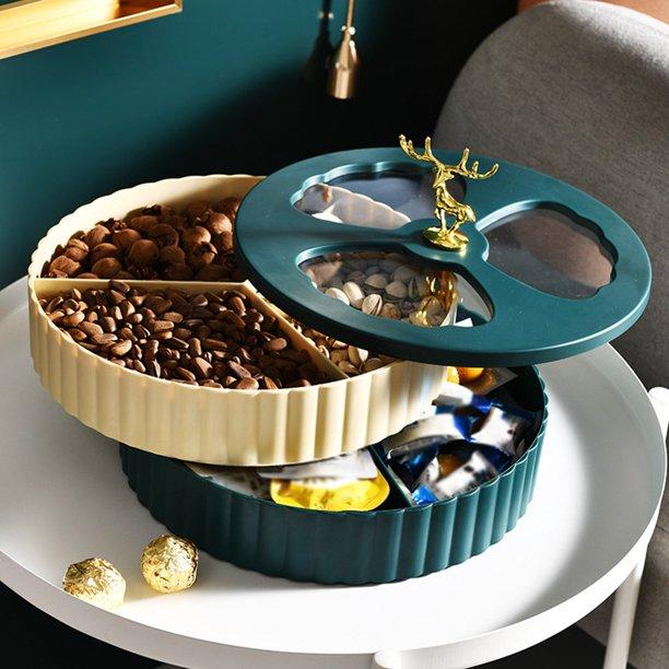 طبق تسالي دورين وبغطاء شفاف انيق ودوار لتقديم المكسرات والكاندي