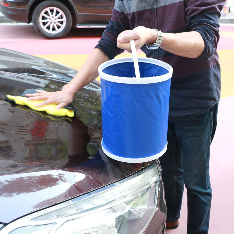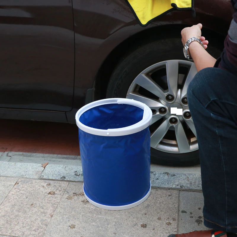 جردل مياه لغسيل السيارات قابل للطي لسهولة التخزين بيد وغطاء 13 لتر