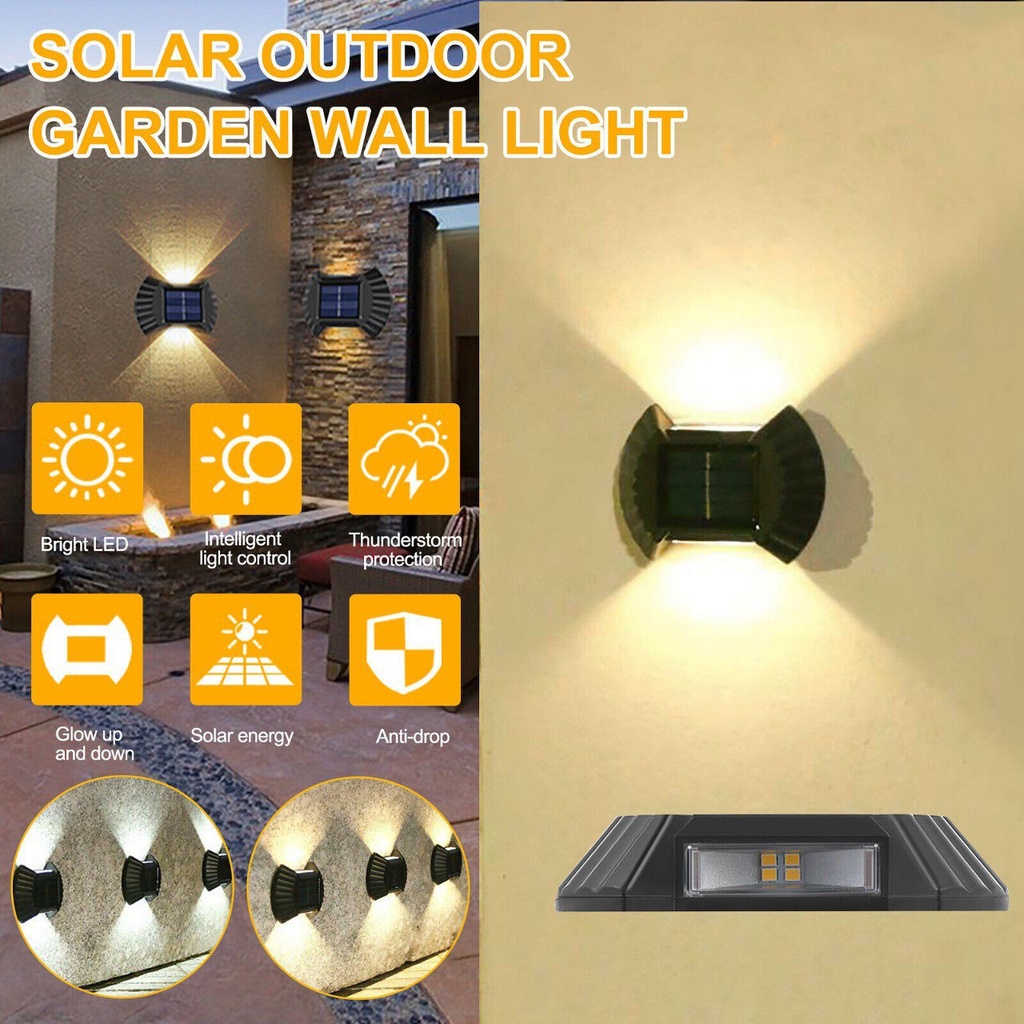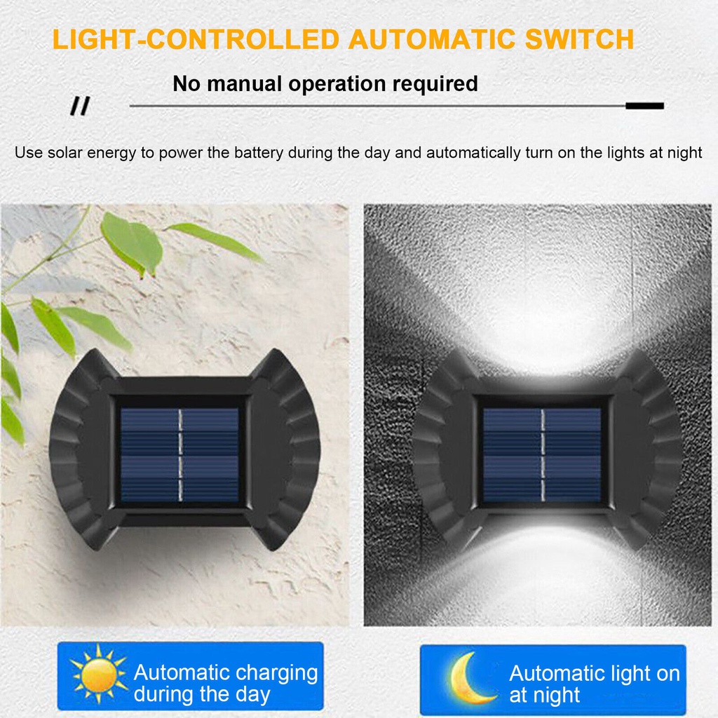 كشاف ليد حائطي وتربروف يعمل بالطاقه الشمسية ويضئ تلقائيآ في الليل 4 قطع