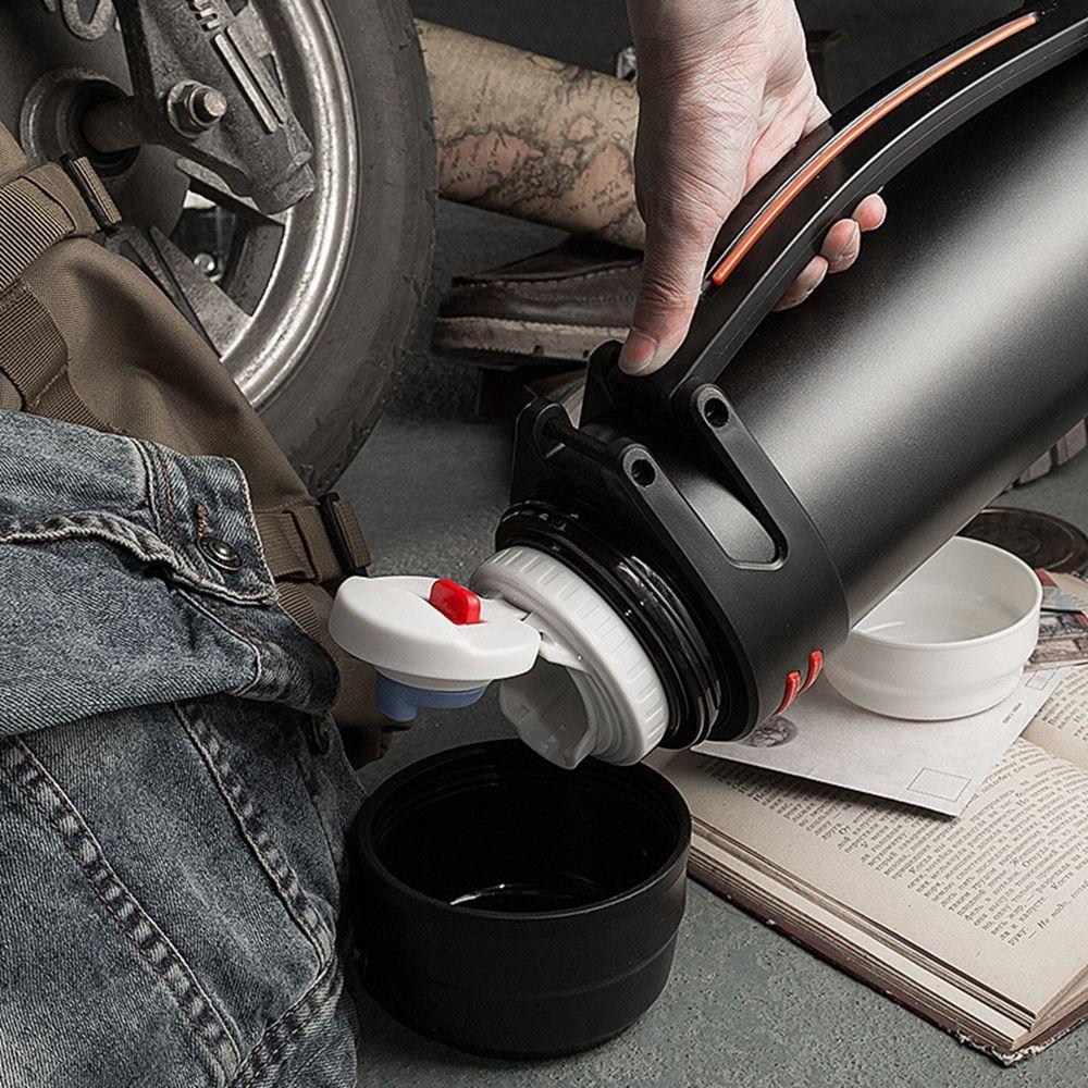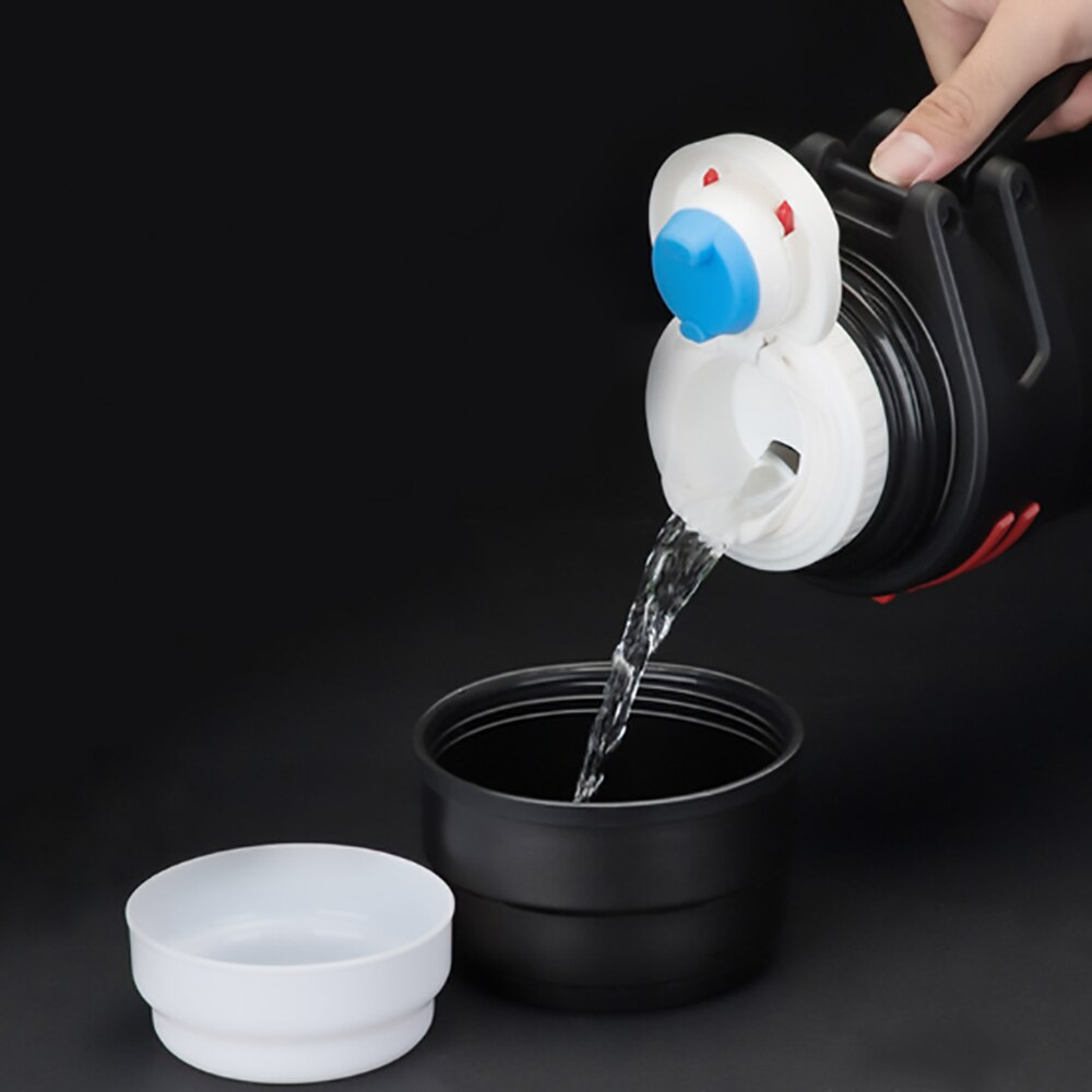 يد كبيرة لسهولة الحمل والتنقل وغطاء محكم الغلق لمنع سقوط المشروبات ويستخدم ككوب للشرب