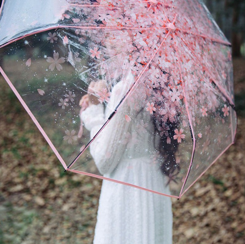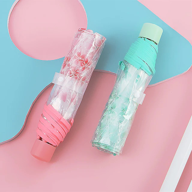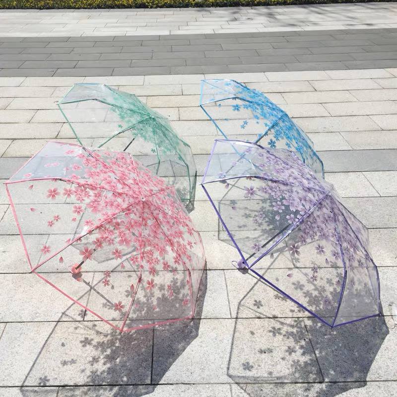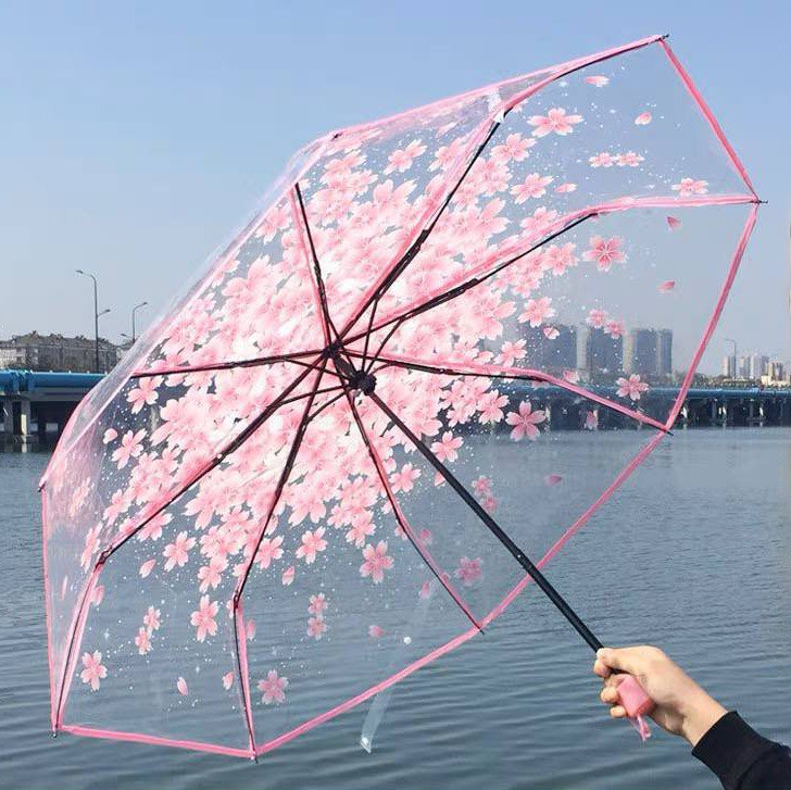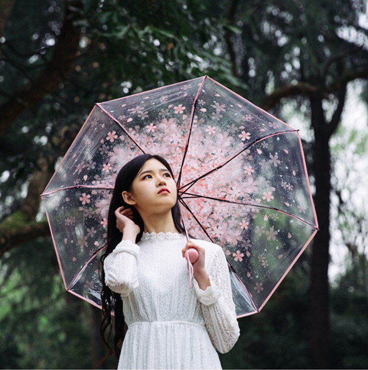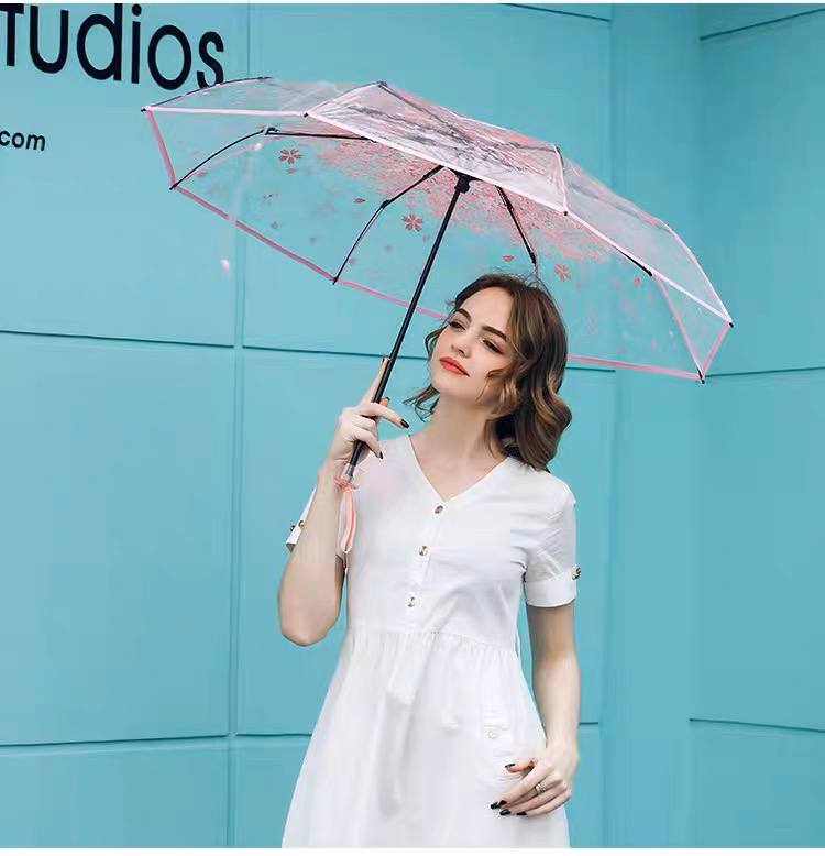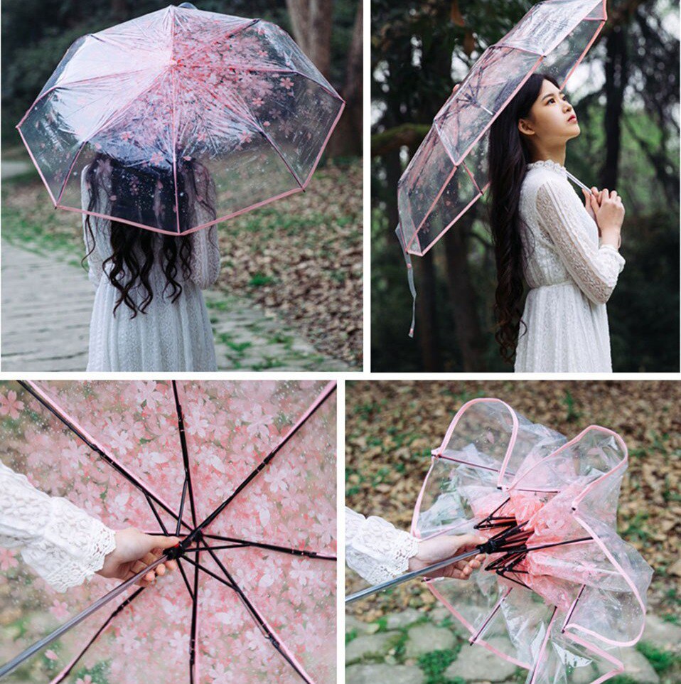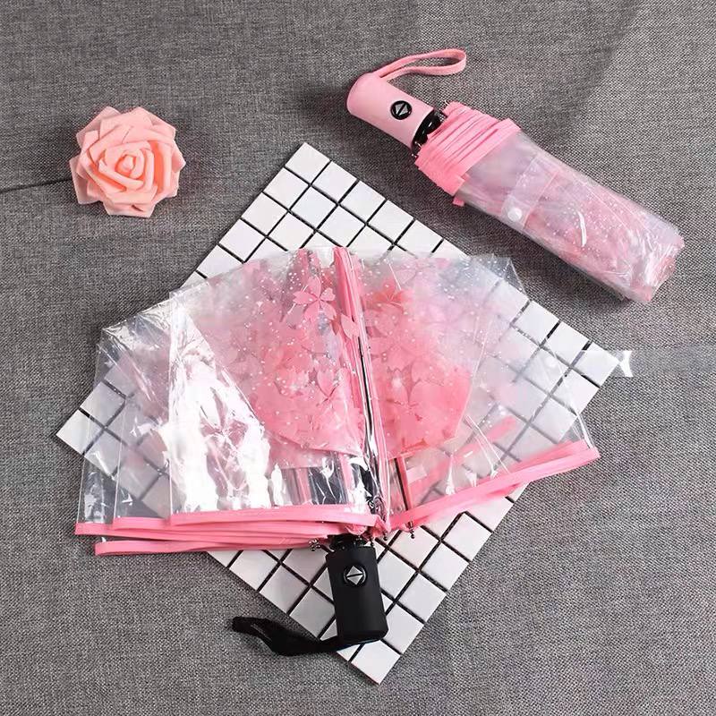 شمسية شفافه بورود ورديه مبهجة للحماية من المطر قابله للطي لسهولة الحمل في الشنط