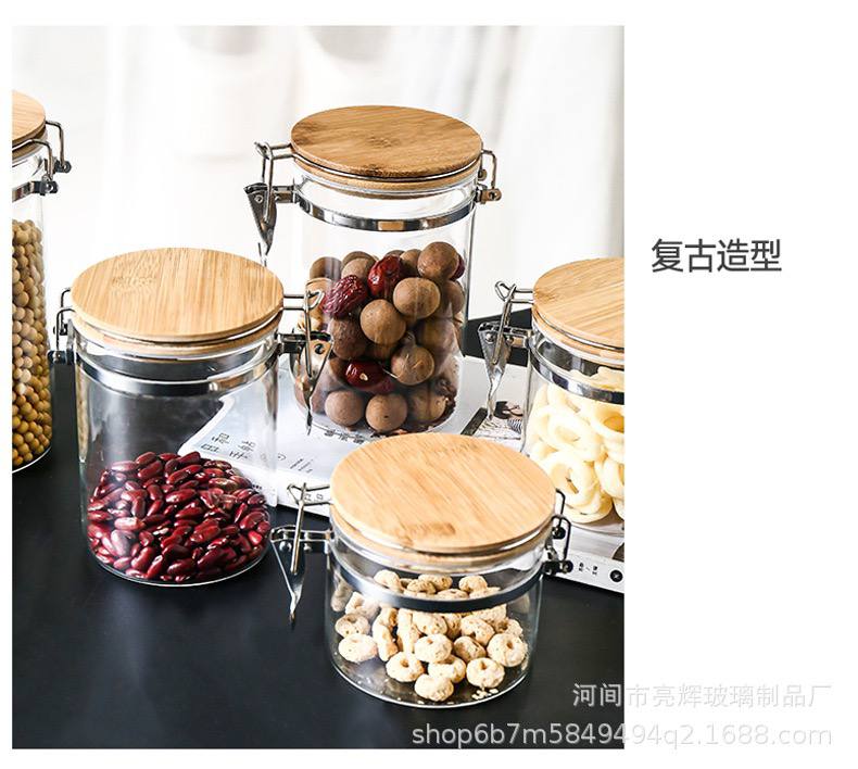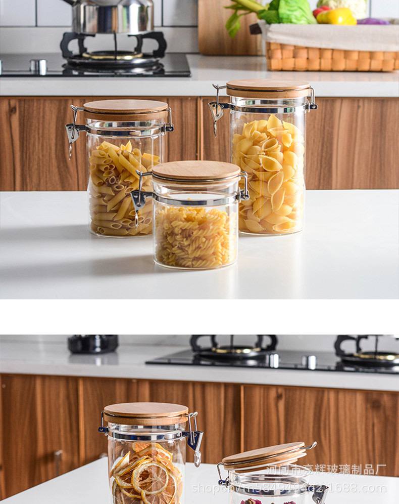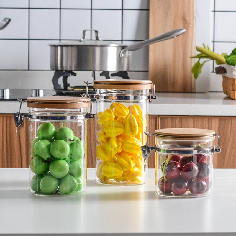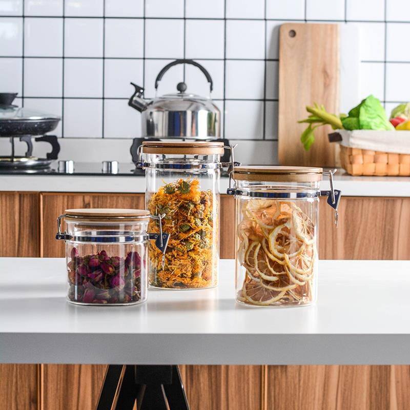 طقم برطمانات زجاجي 3 قطع احجام مختلفة بغطاء خشبي محكم الغلق لحفظ وتخزين الشاي والسكر والحبوب والبقوليات