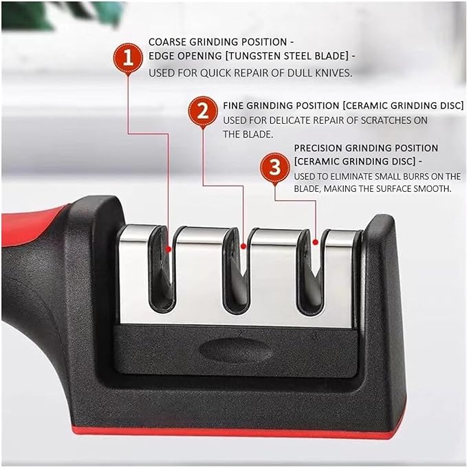 مسن سكاكين ومقصات يدوي 3 درجات مختلفة بمقبض وقاعدة مضادة للانزلاق أثناء الإستخدام