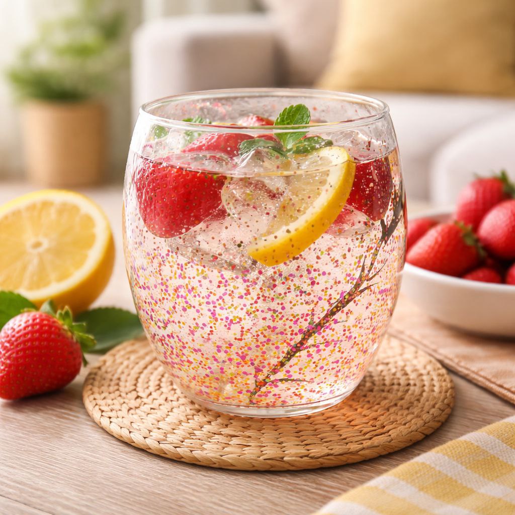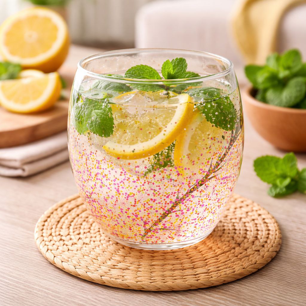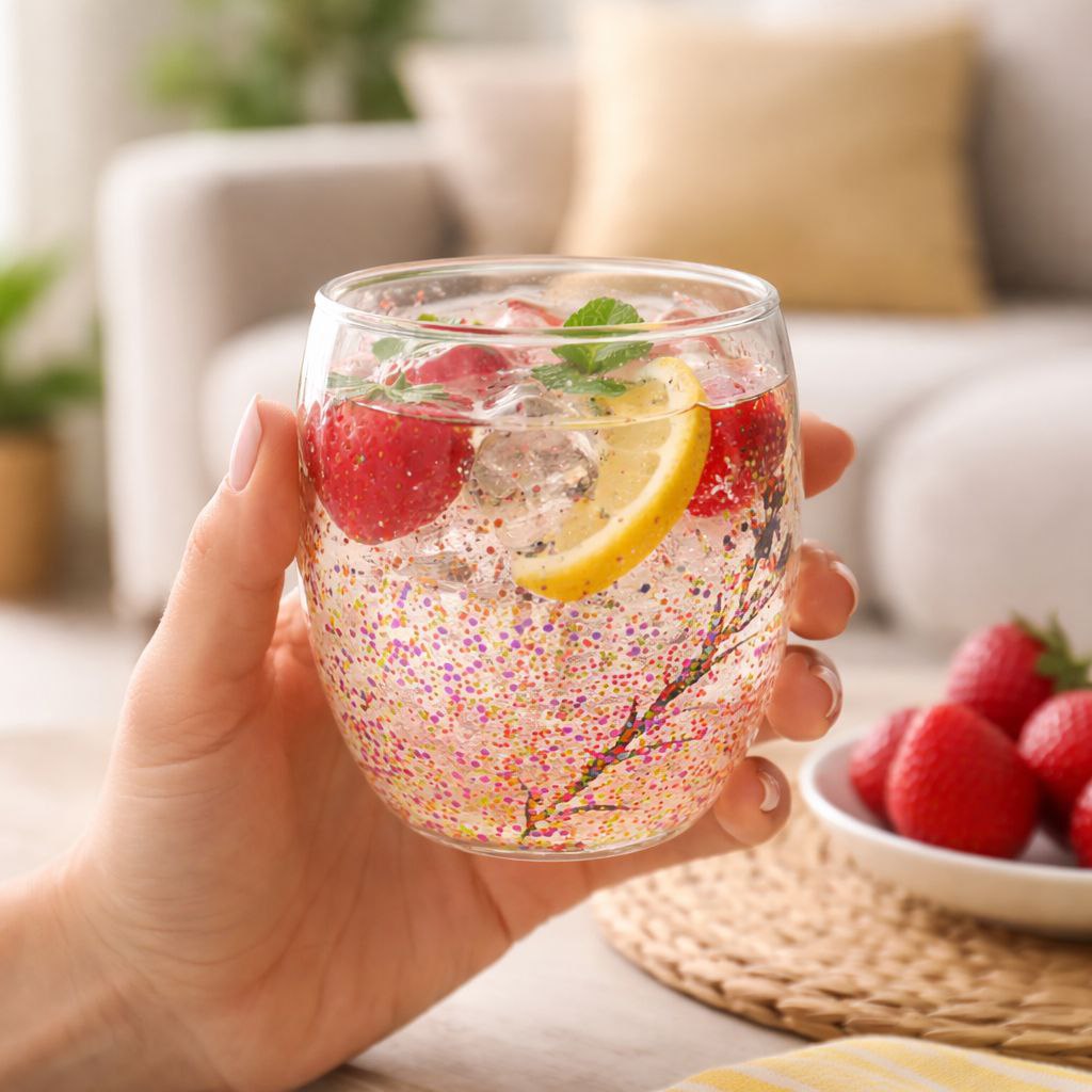 كوباية زجاج دابل مزينة بجليتر متحرك من الداخل