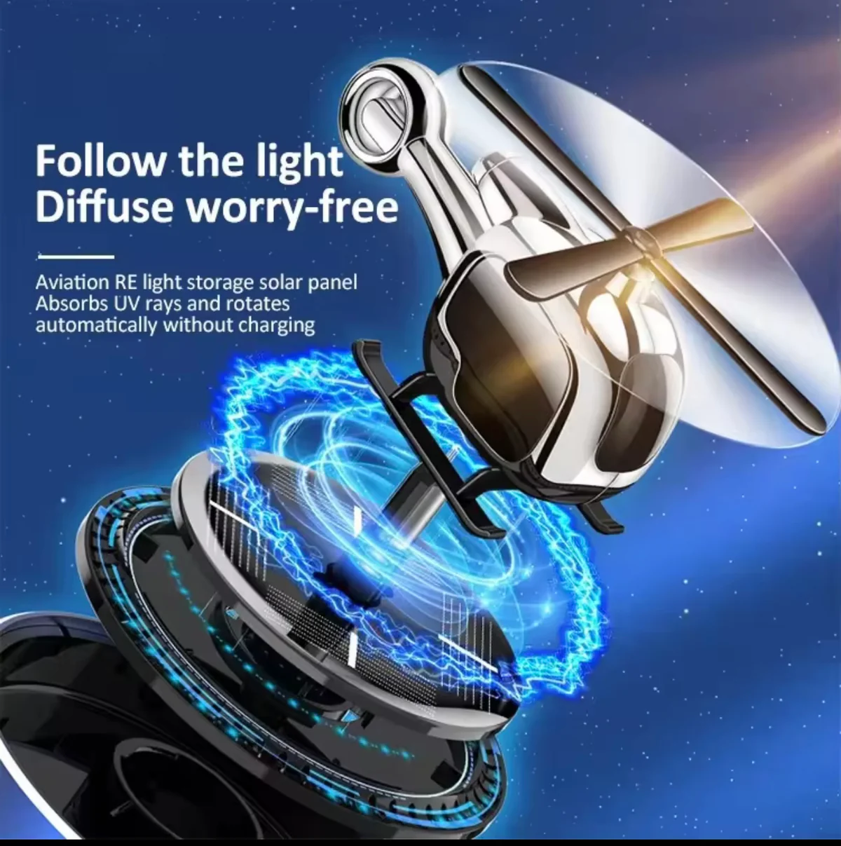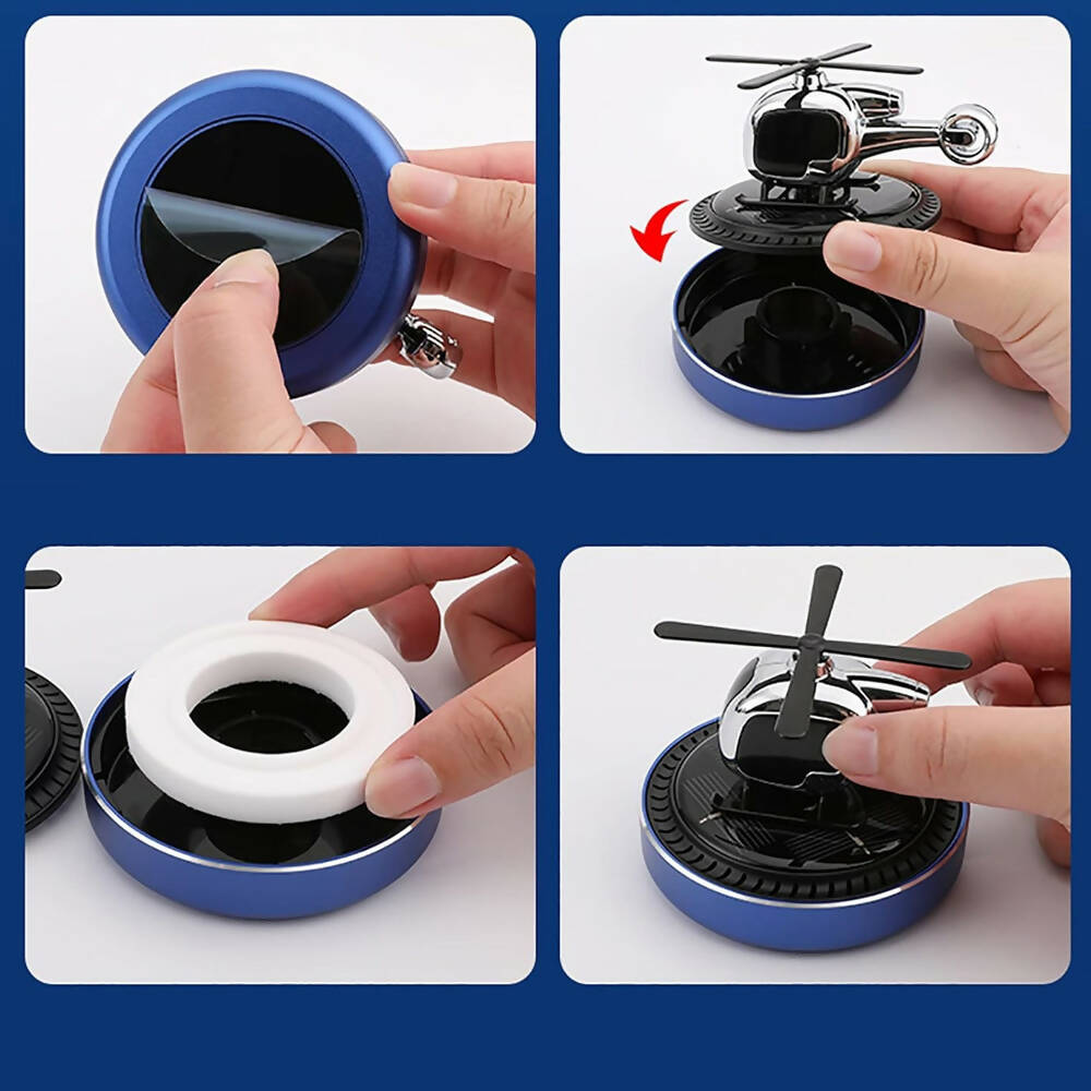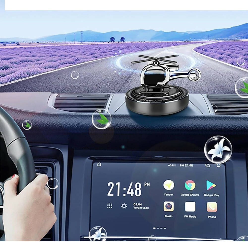 فواحة سيارة علي شكل طيارة مروحية تعمل بالطاقة الشمسية تثبت علي تابلوه السيارة