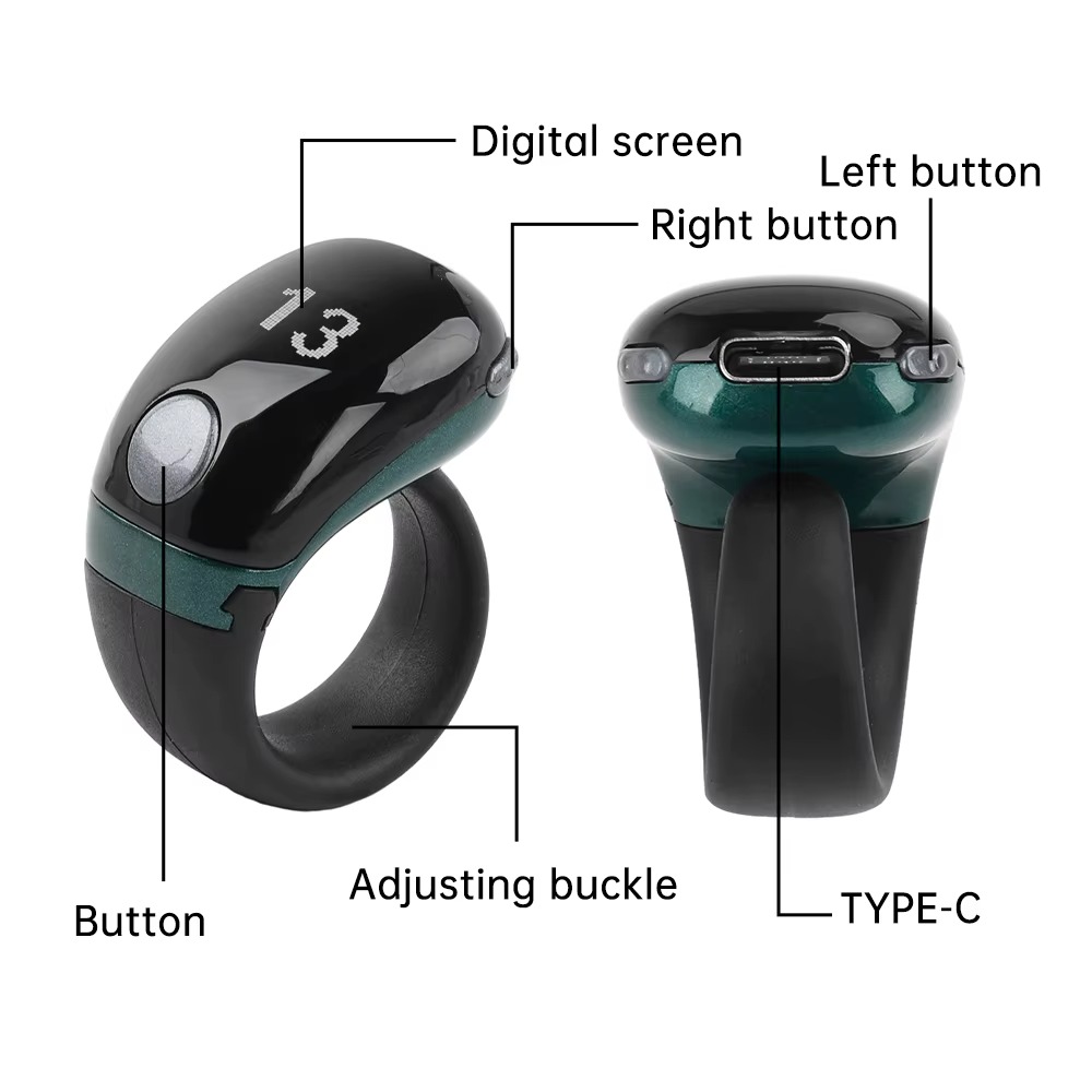 خاتم تسبيح ذكي بشاشة ليد للذكر والتسبيح قابل لإعادة الشحن